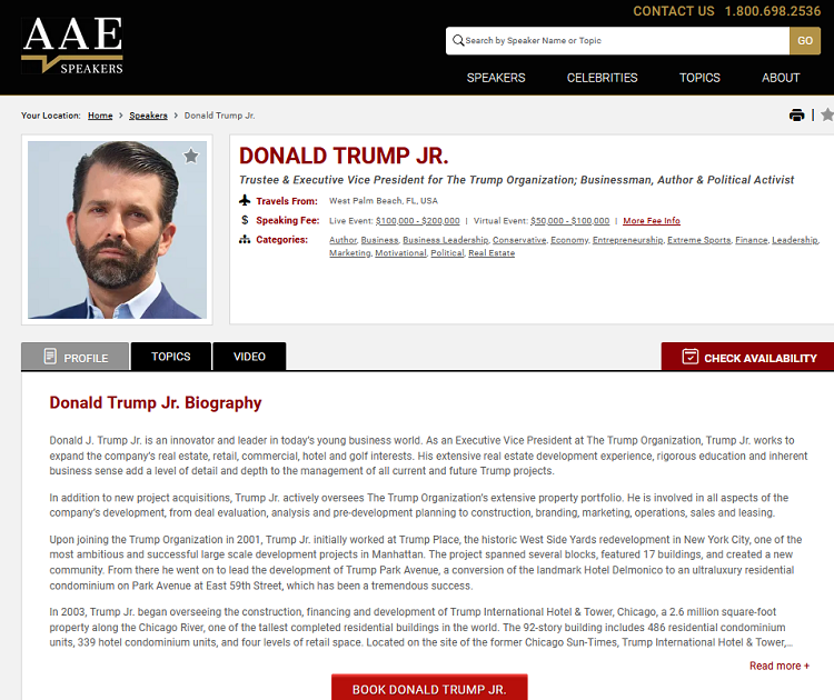 Donald Trump Jr., sin američkog predsjednika Donalda Trumpa, doputovao je u Banja Luku na poziv organizacijskog tajnika SNSD-a Igora Dodika, sina Milorada Dodika predsjednika te stranke. On je u svom govoru, i pozdravljajući visokog gosta, isticao prijateljstvo i zahvalu na posjetu – koje je, vrlo vjerojatno, sveukupno koštalo skoro pola milijuna KM.